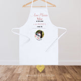 Avental fabricado numa combinação de algodão e poliéster chamado TC. Na frente possui um prático bolso, fitas ajustáveis na cintura e de corte por baixo do joelho.